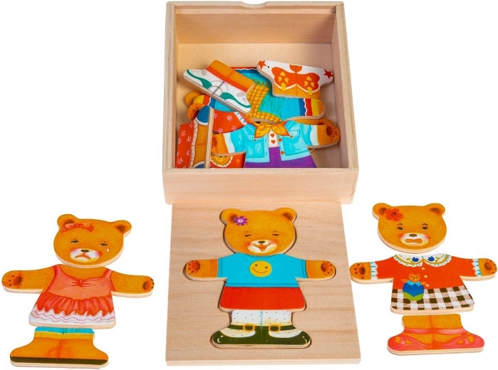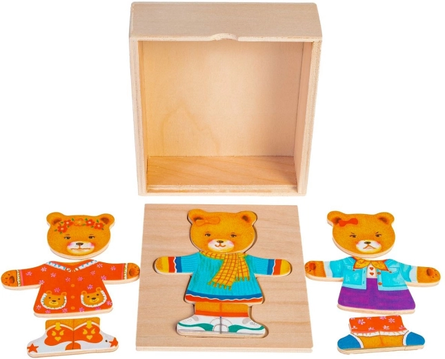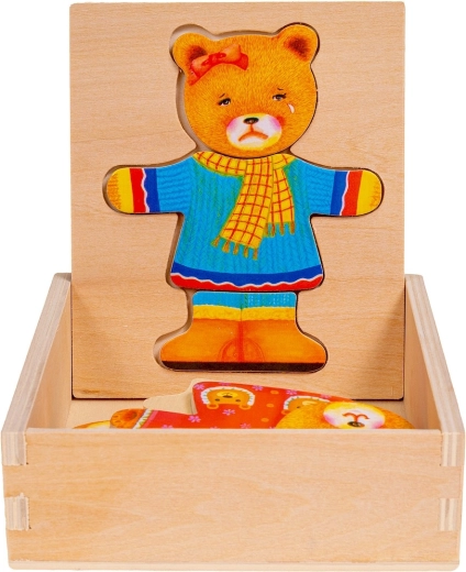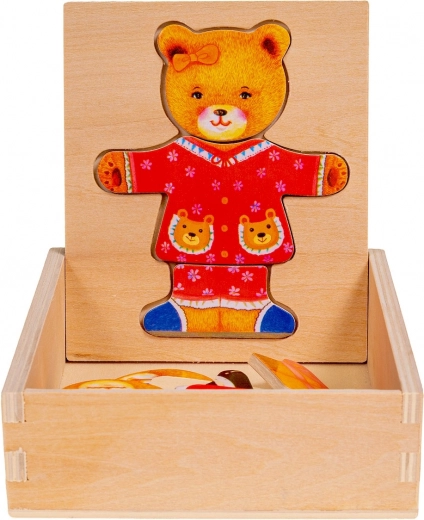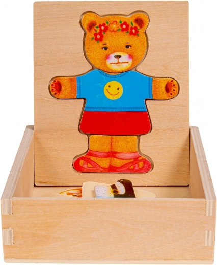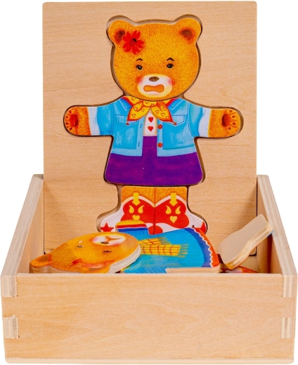 Pomocou puzzle môžete meniť oblečenie a náladu medvedíka dievčatka, čím stimulujete detskú kreativitu a predstavivosť.