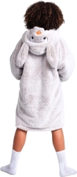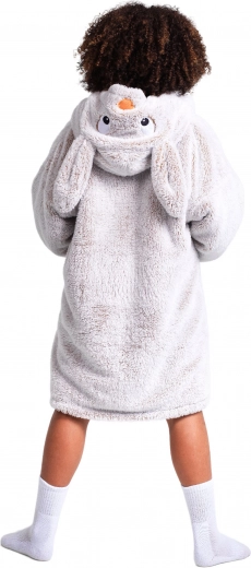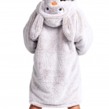 Detská televízna mikina COZY NOXXIEZ s kapucňou v tvare králika kombinuje útulnosť deky a voľnosť mikiny. Dvojitá vrstva – zvonku jemný flanel, vnútri nadýchaný sherpa fleece – udrží vaše deti krásne v teple pri sledovaní televízie, hraní aj oddychu. Veľká kapucňa s uškami a priestranné vrecko z nej robia hravý a zároveň funkčný kúsok na doma aj von.