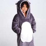 Roztomilá a praktická mikinová deka Cozy Noxxiez koala zahreje deti od 7 do 12 rokov doma aj vonku. Kombinuje mäkučký flanel zvonka a hrejivý sherpa fleece vo vnútri, má veľkú kapucňu s motívom koaly a obrovské predné vrecko na ruky. Ideálna na gaučing, hranie, stanovanie aj chladné večery na záhrade.