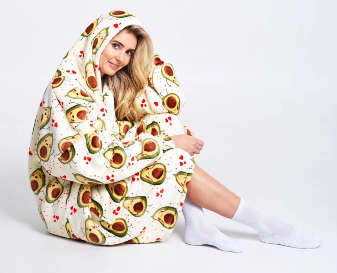 Užite si maximálne pohodlie s mikinovou dekou Cozy Noxxiez Avokádo – kombináciou mikiny a deky v jednom. Jej vnútro tvorí hrejivý sherpa fleece a zovňajšok super mäkký flanel. Vďaka priestrannej kapucni a veľkému prednému vrecku udrží v teple ruky aj hlavu. Ideálna na gaučing, prácu na PC, čítanie aj outdoor v chladnejšom počasí.