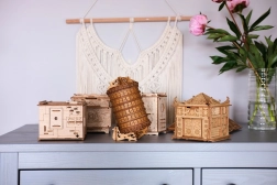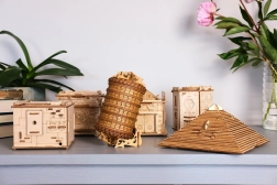 Elegantné drevené telo s detailným gravírovaním zaisťuje odolnosť, krásny vzhľad a príjemný pocit pri riešení hlavolamu.