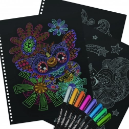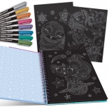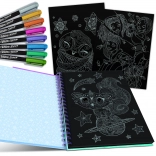 Čierne listy s detailnými obrysmi zvierat a fantazijných motívov uľahčujú vyfarbovanie bez nutnosti skicovania. Ideálne na rýchly štart aj relax.