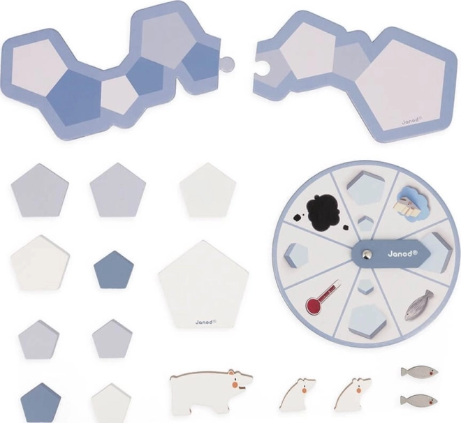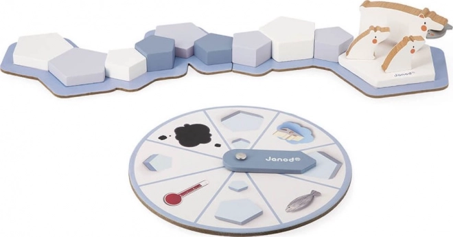 Zažite vzrušujúce dobrodružstvo na ľadovej kryhe s hrou Janod Stolová hra Arctic Party, ktorá kombinuje zábavu s ekologickým vzdelávaním. Pomôžte ľadovému medveďovi a jeho mláďatám v tejto edukačnej drevenej hre bojovať proti topiacemu sa ľadu a iným nástrahám, zatiaľ čo zbierate ryby a zachraňujete arktický svet.