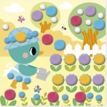 Deti jednoducho nalepujú bambulky správnej farby a veľkosti na vybrané miesta podľa návodov a farebných obrysov na obrázkoch. Dokončenie každého obrázku trvá približne 20 minút, čo je ideálne pre trpezlivosť a sústredenie malých detí.