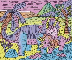 Táto jedinečná sada s tematikou dinosaurov ponúka kreatívny zážitok pre malých umelcov. S pomocou špeciálneho štetca, ktorý má zásobník na vodu, môžu deti postupne maľovať a sledovať, ako krásne farby ožívajú na papieri. Každý obrázok je detailne znázornený a deti sa naučia, ako zabrániť miešaniu farieb. Po dokončení je možné obrázky zarámovať do priloženej krabičky, čo dodá detským výtvorom punc originality.