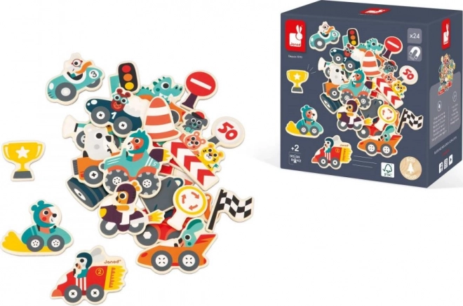 Objavte sadu 24 drevených magnetiek v tvare áut, ktorá prinesie zábavu na všetky magnetické povrchy. Nechajte deti zažiť úžasné pretekárske dobrodružstvá priamo na chladničke alebo nástenke.