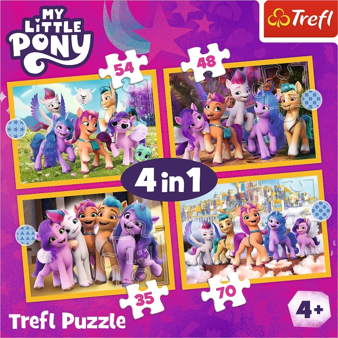 Farebná sada puzzle 4 v 1 s motívmi MY LITTLE PONY poteší malých milovníkov skladačiek. Štyri samostatné obrázky s rozmerom 285 × 205 mm a rôznym počtom dielikov (35, 48, 54, 70) prinášajú zábavu aj postupnú výzvu. Vyrobené v Poľsku z ekologických materiálov, vhodné pre deti od 4 rokov.