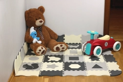 Táto sivo‑krémová penová puzzle podložka premení podlahu na útulné a bezpečné miesto na hru. Vyberateľné stredové dieliky so zvieratkami a geometrickými tvarmi podporujú jemnú motoriku a učenie formou zábavy. Vďaka hrúbke 0,9 cm príjemne tlmí nárazy aj hluk a izoluje od chladu.