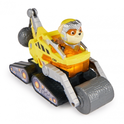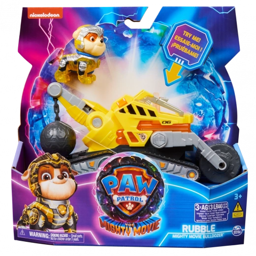 Pridajte sa k Rubbleovi a zažite vzrušujúce záchranárske dobrodružstvá v jeho aute z filmu Paw Patrol: Vo veľkofilme! Tento model auta Tlapkovej patroly meria viac ako 18 centimetrov na dĺžku a 10 centimetrov na výšku, má mimoriadne elegantný dizajn, predný valec a demolačnú guľu a navyše vzrušujúce zvukové efekty so synchronizovanými blikajúcimi svetlami, takže je fantastickým prírastkom do zbierky všetkých fanúšikov Tlapkovej patroly (batérie sú súčasťou balenia)! Rubble má na sebe svoju žltú uniformu z filmu Paw Patrol: Vo veľkofilme, s priehľadnými časťami a krásnou prilbou. Posadíte Rubblea na sedadlo jeho stavebného záchranárskeho vozidla, čím aktivujete osvetlenie na rôznych miestach vozidla, a sledujte, ako sa mu rozsvietia labky, aby bola záchranárska misia ešte napínavejšia a zábavnejšia, keď budete s jeho záchranárskym vozidlom jazdiť z jednej misie na druhú! S hračkami zo sveta Tlapkovej patroly môže dieťa pri hre rozvíjať svoju predstavivosť a motorické zručnosti a zároveň prežívať svoje obľúbené scény z filmu. Pre ešte zábavnejšie a napínavejšie misie inšpirované seriálom Tlapková patrola zbierajte všetky hračky z filmov o Tlapkovej patrole, ako napríklad úžasnú veliteľskú lietadlovú loď, a všetky hračky zo špeciálnej edície Tlapkovej patroly pre dievčatá a chlapcov, ako sú figúrky a herné sady Mighty Pups, Aqua Pups a Big Truck Pups (každá sa predáva samostatne), a užite si nekonečné dobrodružstvá so svojím obľúbeným psím hrdinom a Rubbleovým záchranárskym vozidlom z filmu Paw Patrol: Vo veľkofilme!