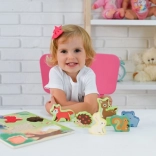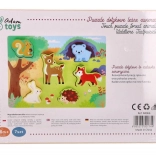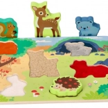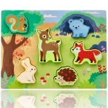 Vďaka odolnému lakovanému povrchu a hladkým hranám je hračka vhodná na každodenné hranie. Podporuje koordináciu oko–ruka, trpezlivosť a sústredenie, pričom deti prirodzene spoznávajú zvieratá z lesa.