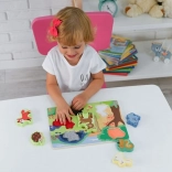 Táto kvalitná drevená skladačka s motívom lesných zvierat je navrhnutá tak, aby malé deti zaujala farbami i tvarmi a zároveň ich bezpečne sprevádzala prvými krôčikmi objavovania. Hrubšie 3D dieliky sa dobre držia v ruke a ľahko sa vkladajú do výrezov na podložke.
