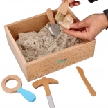 Táto kreatívna sada je ideálna pre malých dobrodruhov, ktorí milujú vykopávky, dinosaury a hranie sa v piesku. Deti môžu hľadať a identifikovať nálezy, vytvárať vlastné archeologické expedície a rozvíjať jemnú motoriku aj fantáziu. Kinetický piesok je opakovane použiteľný, nelepí sa na ruky a ľahko sa upratuje.