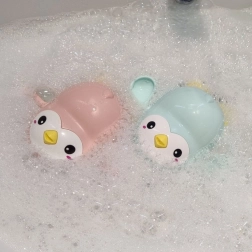 Jednoducho otočte mechanizmus a sledujte, ako tučniaci veselo plávajú a víria bublinky – bezpečná a nekonečná zábava vo vani.