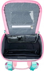 Praktický vyklápací systém otvárania dáva jednoduchší prístup k pomôckam priamo zo školskej lavice. Vnútorný organizér zabezpečuje správne rozloženie hmotnosti, zatiaľ čo gumička všetko pevne drží. Bočné vrecká z pevnej sieťoviny sú ideálne na fľaše s nápojom.