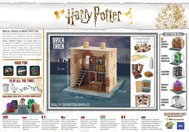 Táto stavebnica vás prenesie priamo do sveta Harryho Pottera. Môžete si zložiť autentický model obchodu s potrebami pre metlobal, kde sa kupujú metly a ďalšie vybavenie. Použite kartónové dekoračné prvky, prírodné mach a kamene na vytvorenie jedinečnej atmosféry Uličky Diagon.
