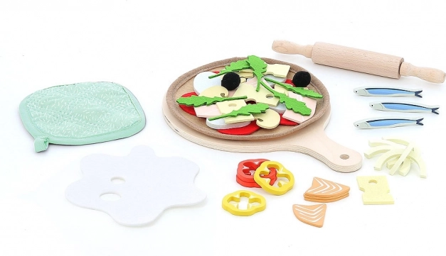 Doprajte malým kuchárom autentický zážitok z prípravy pizze. Drevená sada obsahuje všetko, čo je potrebné na „upečenie“ dokonalej pizze – od cesta a podložky až po pestré toppingy. Vďaka príjemným prírodným materiálom je hra bezpečná, odolná a hmatovo atraktívna.
