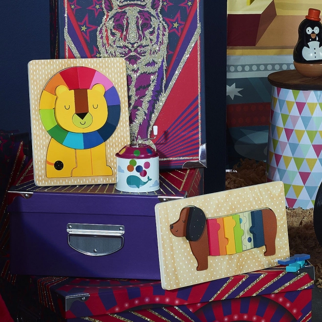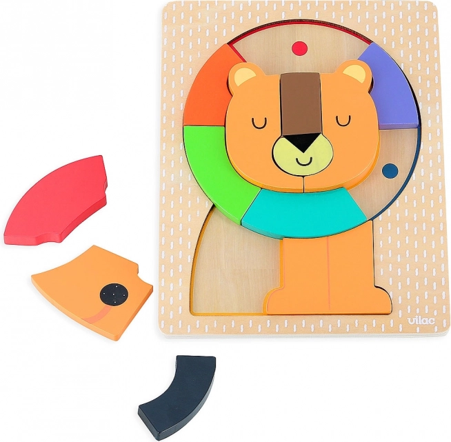 Toto kvalitné drevené vkladacie puzzle s motívom leva ponúkne deťom zábavné učenie formou hry. Každé miesto na základnej doske je farebne rozlíšené, čo napomáha lepšej orientácii a úspešnému skladaniu. Vďaka pevným a hladkým dielikom je puzzle ideálne pre malé deti od 2 rokov.