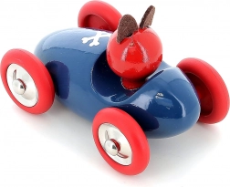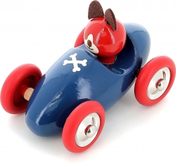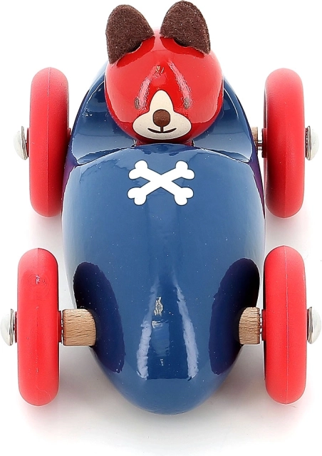 Pretekárske autíčko pes Lucien v ikonickom modro-červenom prevedení je vyrobené z kvalitného dreva a lakované jedinečnou technológiou ponorenia, ktorá zabezpečuje hladký povrch, výrazné farby a dlhú životnosť. Deti si zamilujú ľahké kotúľanie, príjemné tvary a priateľský výraz vodiča.