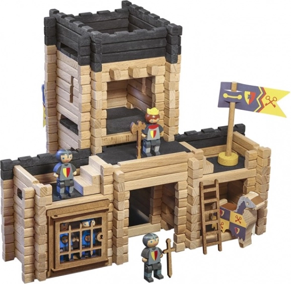 Táto kvalitná drevená stavebnica JEUJURA rozvíja jemnú motoriku, kreativitu aj logické myslenie. Diely z masívneho bukového a borovicového dreva do seba jednoducho zapadajú, takže deti ľahko postavia pevnosť s detailmi, ako je zdvíhací most, väzenie a strážne ochozy. Hru dopĺňajú aj rytierske figúrky, kone a katapult pre akčné príbehy.