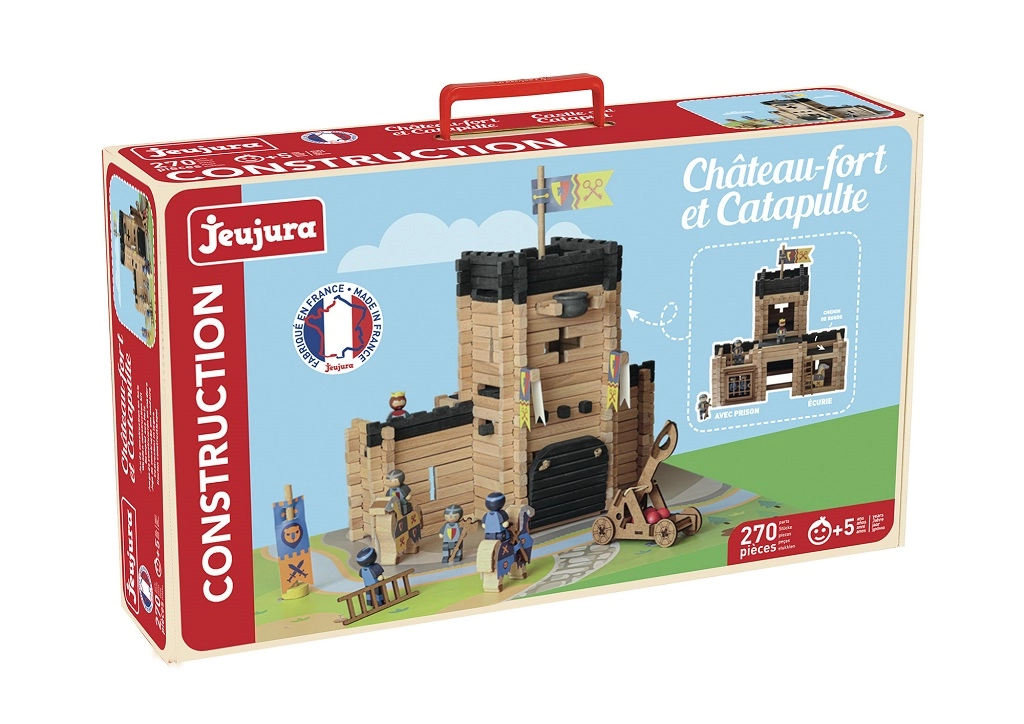 Postavte si vlastné stredoveké kráľovstvo s drevenou stavebnicou JEUJURA. Sada s 270 dielikmi z masívneho dreva umožní deťom vytvoriť veľký hrad so zdvíhacím mostom, väzením, strážnymi lávkami, vlajkami a funkčným katapultom. Tradičná francúzska výroba, bezpečné farby na vodnej báze a praktické balenie v lepenkovom kufríku robia z tejto sady dokonalý dar pre malých staviteľov od 5 rokov.