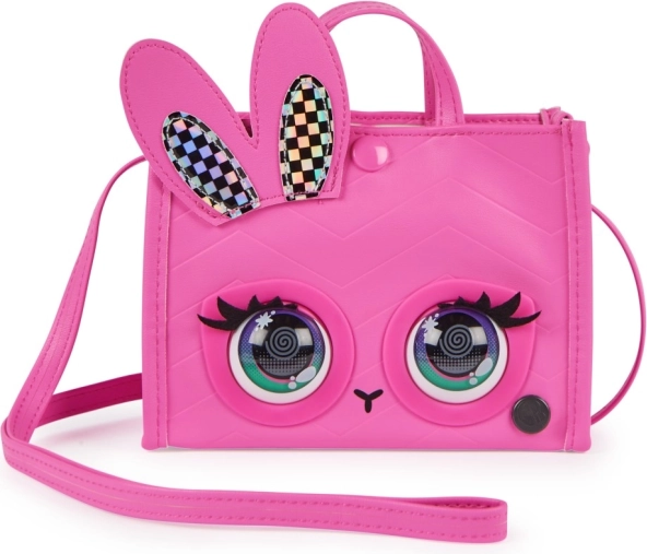 Vyjadrite svoj štýl s roztomilou kabelkou PURSE PETS Holly Hops v ružovom dizajne s pop-art očami a holografickými zajačími uškami. Kabelka reaguje na dotyk – žmurkaním a zvukmi – a premení každý outfit na zábavnú show. Vďaka šikovným režimom si deti užijú tanec do rytmu aj súťaž v zízaní.