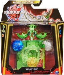 Štartovacia sada s 3 bojovníkmi Bakugan zo série 6. Balenie obsahuje 1 Bakugan Špeciálny útok (rotácia), 1 kruh, 1 ťažné lanko, 2 Core Bakugan, 3 karty charakteru, 2 Gate karty, 1 karta špeciálny útok, 3 Brawler karty, inštrukcie a pravidlá. Vhodné od 6 rokov.