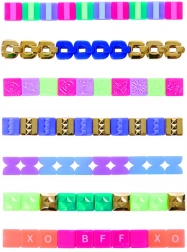 Popustite uzdu fantázii! Táto sada na výrobu náramkov obsahuje bohatý výber korálikov – zlaté retiazky, emotikony, brúsené aj pruhované koráliky, priesvitné prvky a nálepky s písmenami – pre nekonečné kombinácie štýlov. Vďaka jednoduchému nacvakávaciemu systému deti rýchlo menia dizajn a vytvárajú náramky priateľstva presne podľa nálady.