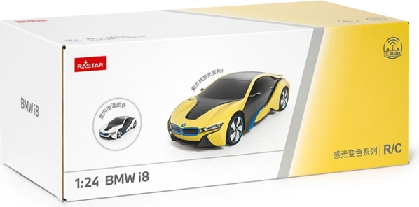 RASTAR diaľkovo ovládaný model BMW i8 je futuristické auto s unikátnym lakovaním, ktoré mení farbu z bielej na žltú pri použití slnečného alebo LED svetla. Toto licencované BMW kombinuje najnovšie technológie s vierohodne reprodukovanými detailmi skutočného vozidla.