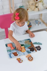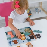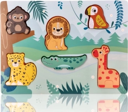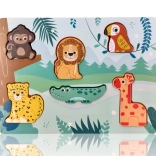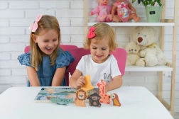 Drevené 3D puzzle Safari Zvieratá sú ideálnou hračkou pre deti od 12 mesiacov. Pomáhajú rozvíjať kognitívne schopnosti tým, že deti skladajú rôzne tvary zvierat do príslušných výrezov.