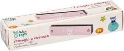 Ružová harmonika má k dispozícii niekoľko otvorov pre hranie, čo umožňuje vytvárať rozmanité melódie. Materiál, pravdepodobne kovový, zaručuje odolnosť a dlhú životnosť. Estetický motív harmoniky pridáva kúzlo tomuto hudobnému nástroju, čo ho robí obľúbenou voľbou medzi hudobnými hračkami pre deti.