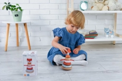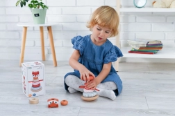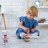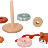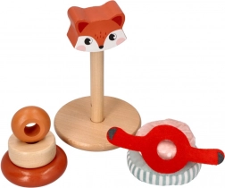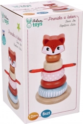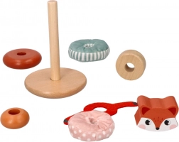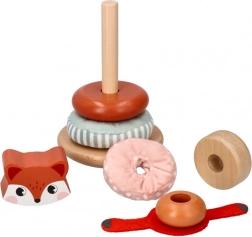 Stohovacia veža s motívom líšky je ideálnou hračkou pre malé deti, ktoré chcú skúmať svoje zmysly. Každý kus hračky ponúka rôzne textúry, od hladkého dreva po mäkké látky, a je určený na rozvoj senzorickej integrácie. Jasné farby a vzory pomáhajú s rastúcou vizuálnou percepciou, pričom stohovanie a manipulácia jednotlivých prvkov posilňuje jemnú a hrubú motoriku.
