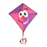 Ružovo‑fialové prevedenie s usmiatou tvárou je perfektne viditeľné, takže draka ľahko sledujú deti aj dospelí.
