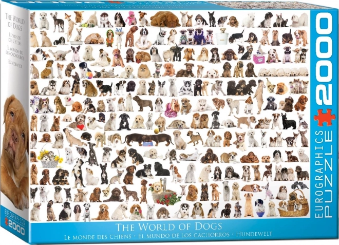Užite si výzvu s puzzle EUROGRAPHICS Svet psov o celkovom rozmere 99,7 x 67,6 cm. Vďaka unikátnej raznici, ktorá nekopíruje štandardnú mriežku, majú dieliky neobvyklý tvar a rohy a hrany nie sú vždy v jednej osi, čo zvyšuje obtiažnosť skladania.