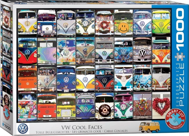Puzzle EUROGRAPHICS VW Cool Faces je balené v kompaktnej štvorcovej krabici, ktorá šetrí miesto a je ideálna na uchovávanie aj transport. To, čo toto puzzle odlišuje, je jeho originálna raznica. Dieliky nemajú štandardný tvar, čo zvyšuje celkovú náročnosť a ponúka nový herný zážitok.