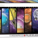 Vstúpte do fascinujúceho sveta astronómie s panoramatickými puzzle EUROGRAPHICS Slnečná sústava. Vďaka precíznej tlači a sýtym farbám si vychutnáte detailné zobrazenie Slnka, jednotlivých planét a ich mesiacov, doplnené o kľúčové informácie ako vzdialenosť od Slnka, obežná doba, povrchová teplota, dĺžka dňa a priemer. Všetky popisy sú uvedené v angličtine.
