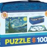 Toto štýlové puzzle EUROGRAPHICS prichádza v špeciálnom darčekovom prevedení – kompaktnom termo desiatovom boxe, ktorý poteší pri každej príležitosti. Ikonický motív Hviezdna noc prináša nádherné farby a jemné detaily, vďaka čomu je skladanie zábavné a relaxačné.