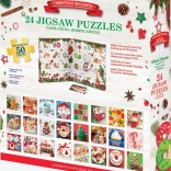 Tento adventný kalendár od EUROGRAPHICS prináša radosť do každého decembrového dňa. V 24 okienkach nájdete 24 rôznych puzzle, každé s 50 dielikmi a krásnym vianočným motívom. Obrázky sú štvorcové a po poskladaní majú rozmer cca 12,5 × 12,5 cm. V každom okienku je priložená aj predloha pre jednoduchšie skladanie a na zadnej strane obalu nájdete prehľad všetkých motívov.