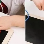 Farebné šnúrky sa k tabuli prichytia počas chvíľky – deti môžu voľne experimentovať, prekladať línie a skladať nové vzory bez lepidla.