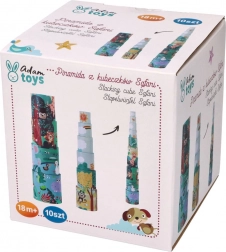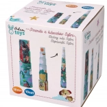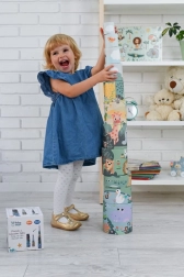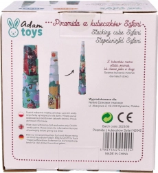 Pyramída z kelímkov Safari ponúka deťom zábavu a zároveň rozvíja ich schopnosti. Sada obsahuje kelímky rôznych veľkostí, ktoré možno ľahko stavať do výšky až 96 cm. Každý kelímok je zdobený pestrými ilustráciami zvierat, ktoré stimulujú detskú predstavivosť.