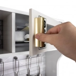 Biele prevedenie so zlatými detailmi, kovovo pôsobiace ovládače a robustná MDF konštrukcia zaručujú stabilitu, bezpečie a dlhú životnosť.