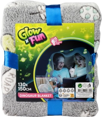 Táto sivá plyšová deka s rozkošnými motívmi dinosaurov rozžiari každý večer. Na jednoduché svetielkovanie v tme stačí krátke nasvietenie – čím intenzívnejšie a dlhšie, tým silnejší a dlhší efekt. Ideálna na relax na gauči, do detskej izby aj ako originálny darček.