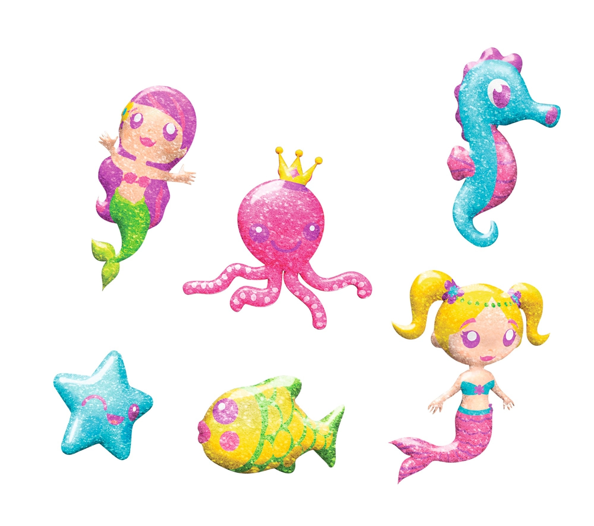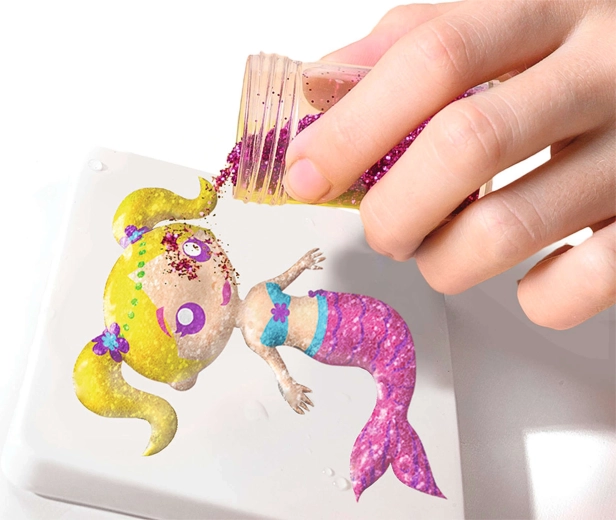 Aplikačné fľaštičky s úzkou tryskou uľahčujú vyfarbovanie aj drobné detaily. Trblietky dodajú morským postavičkám pôvabný lesk.