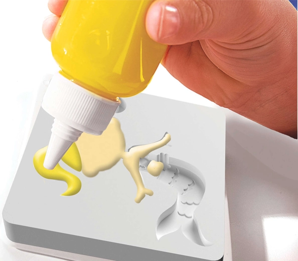 Vyplňte formičky farebnými gélmi, ponorte do pripraveného roztoku a sledujte, ako sa plochý obrázok zmení na mäkkú 3D dekoráciu. Jednoduché, rýchle a zábavné.