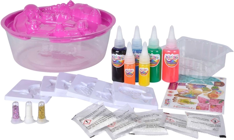 Objavte svet tvorenia s Aqua Gelz – kreatívnym setom s motívom morských panien, v ktorom si deti vyrobia farebné 3D figúrky z gélu. Stačí pripraviť roztok, vyplniť formičky žiarivými gélmi, ponoriť do vody a počas pár sekúnd vzniknú mäkké, lesklé dekorácie pripravené na hru. Ideálne na rozvoj jemnej motoriky, fantázie a tvorivosti.