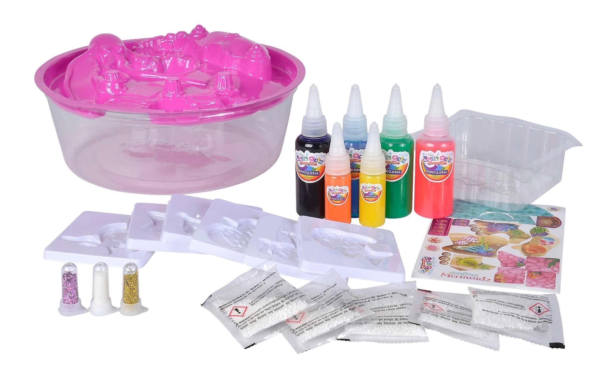 Sada Aqua Gelz Magické morské panny prináša deťom nekonečnú zábavu pri vode aj pri stole. Pomocou špeciálneho roztoku a farebných gélov vytvoria počas chvíľky 3D postavičky morských tvorov a sirén. Vďaka jednoduchému postupu a presným aplikačným fľaštičkám je tvorenie ľahké, čisté a pútavé.