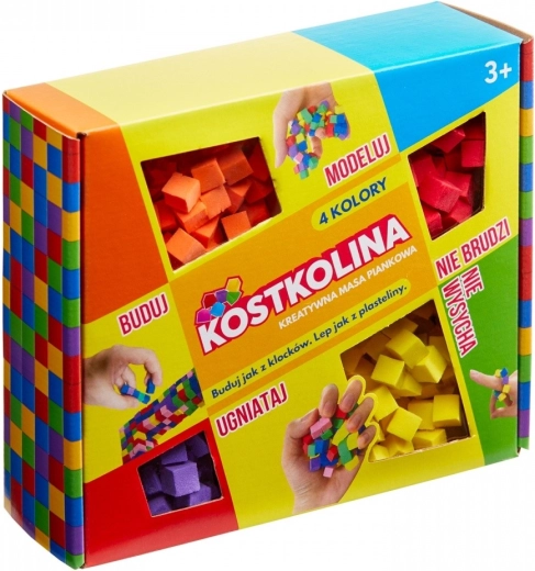 Kostkolina žltá v sade so 4 farbami je ideálna pre malých tvorcov. Spájajte drobné kocky do originálnych tvarov, stavajte konštrukcie ako z kociek a tvorte vlastný svet plný farieb. Materiál je ľahký, nadýchaný a príjemný do ruky, takže modelovanie je jednoduché a zábavné.