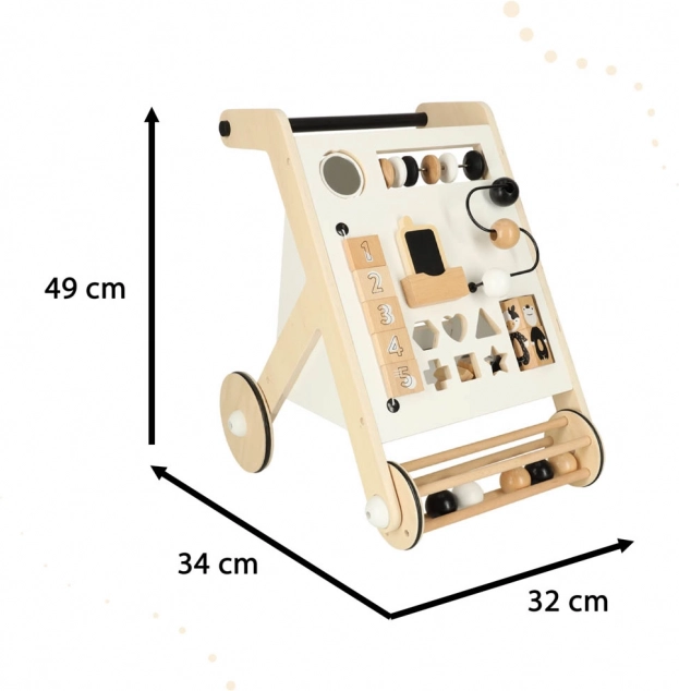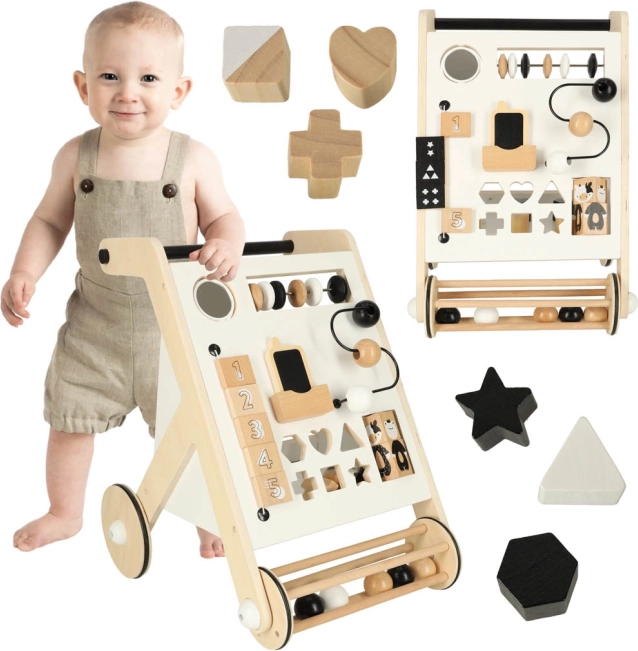 Prvé kroky batoľaťa môžu byť výzvou, ale s naším dreveným chodítkom, ktoré kombinuje hru a učenie, bude tento proces jednoduchší a zábavnejší. Tento nástroj je vybavený vzdelávacími hračkami, ktoré podnecujú predstavivosť a zlepšujú jemnú motoriku. Presúvanie guličiek, triedenie kociek a otáčanie číslic - všetky tieto aktivity pomáhajú v rozvoji zručností.