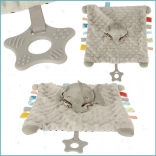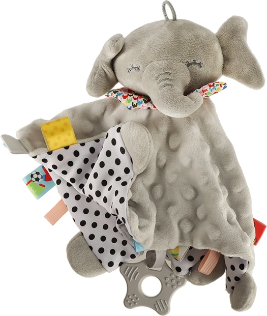 Šuštiaci slon je multifunkčná senzorická hračka, ktorá spĺňa všetky potreby vášho dieťaťa. Poskytuje maznivý komfort, zatiaľ čo hryzátko pomôže uľaviť od bolesti pri prerezávaní zúbkov. Sloník je vyrobený z mäkučkého materiálu s zaujímavou textúrou, ktorá rozvíja hmat dieťaťa.