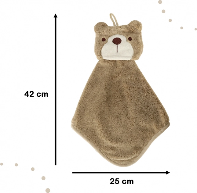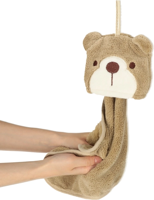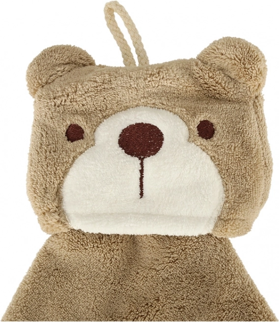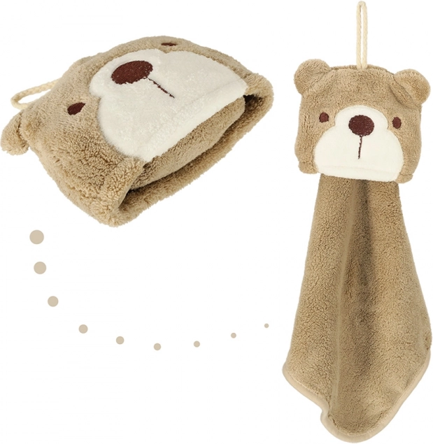Mäkký a príjemný na dotyk, uterák je vyrobený z kvalitného polyesteru a nylónu v hnedej farbe. Jeho dizajn je obohatený o kapsičku s medvedíkom, ktorá nielen zdobí, ale aj uľahčuje skladovanie uteráka, najmä pri cestovaní. Možnosť prania v práčke do 30°C umožňuje veľmi ľahkú údržbu.
