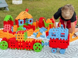 Súčasťou hry je skladanie kociek, ktoré prispieva k rozvoju jemnej motoriky a koordinácii rúk a očí.